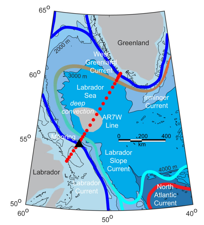 Depuis lors, la ligne est occupée chaque année, généralement en mai, avec l'ajout de mesures chimiques et biologiques. Les conditions océanographiques et les interactions atmosphère-océan dans la mer du Labrador revêtent une importance particulière, car :